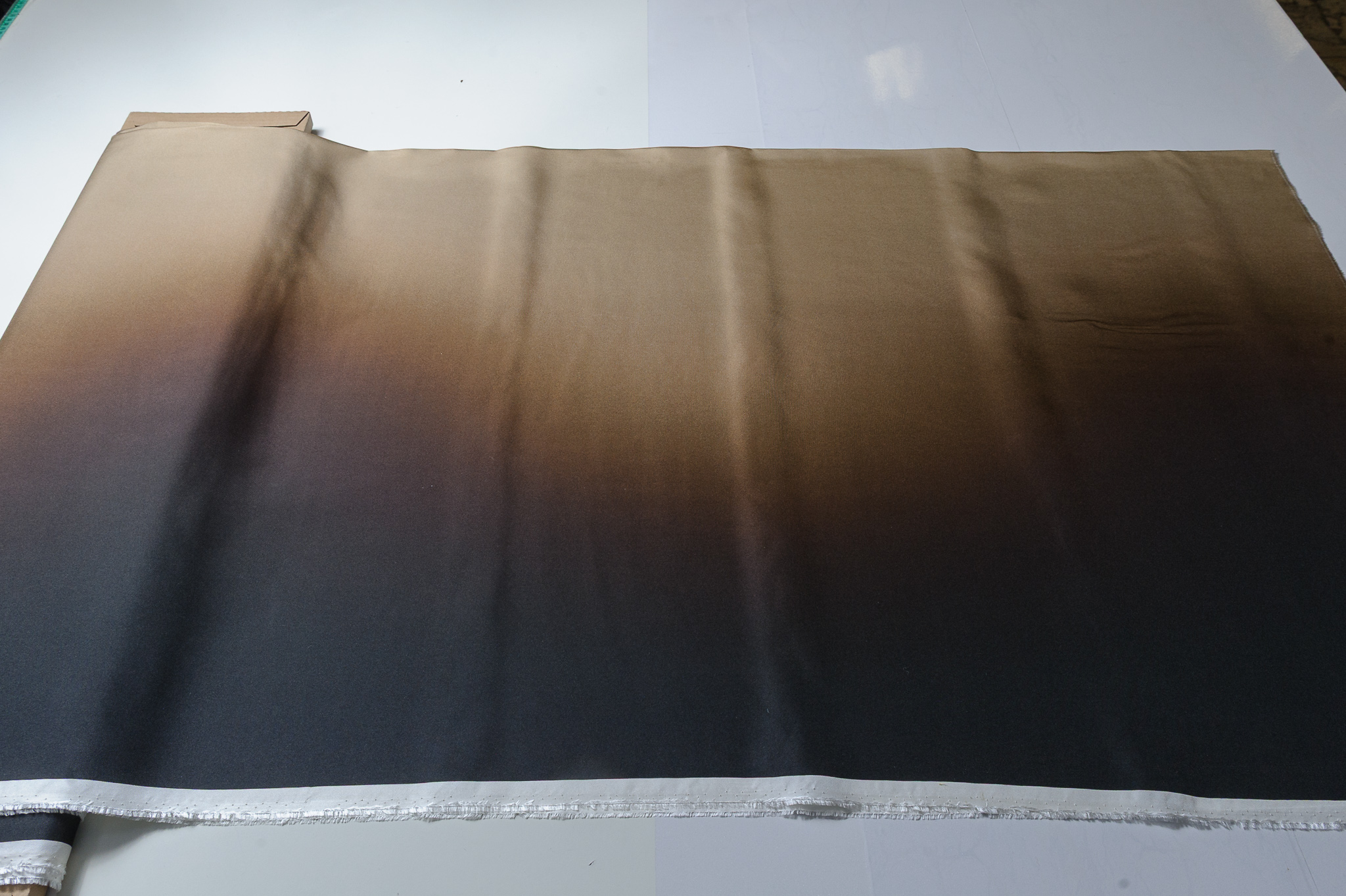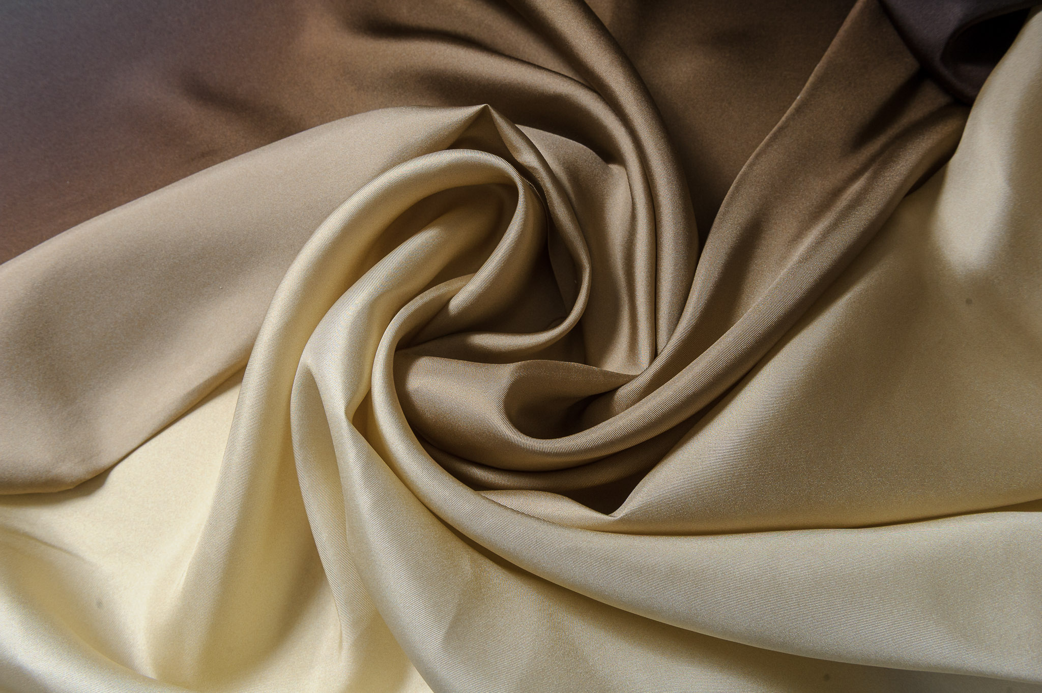 Materiał lejący, nie prześwituje. Kolory cieniowane przechodzące od czarnego, przez brązu, do beżu. Odpowiedni na sukienki, koszule, spódnice, bluzki.
