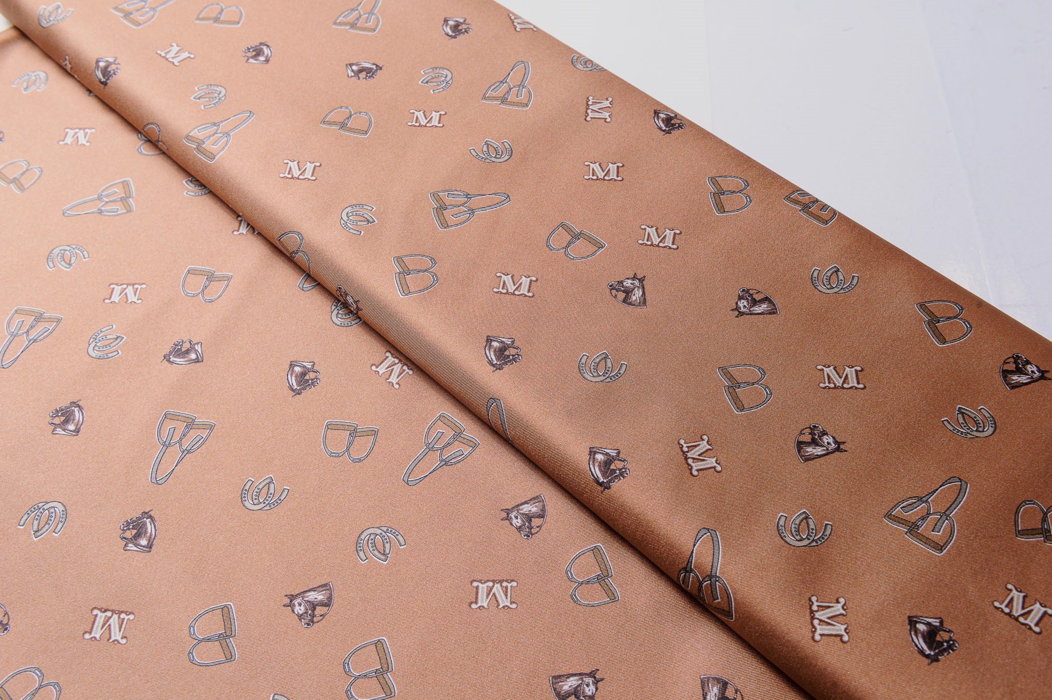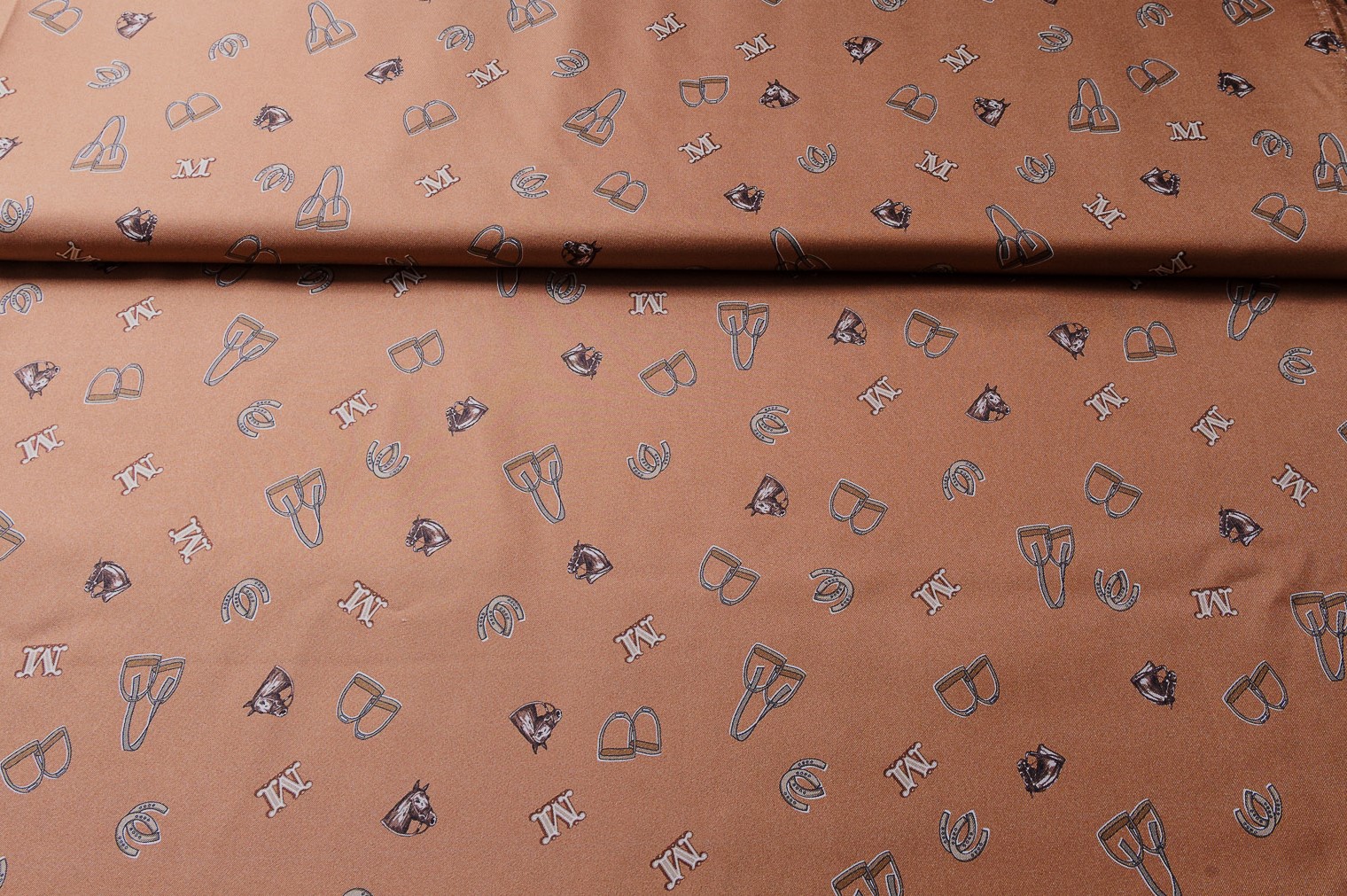 Materiał nie prześwitujący, sztywniejszy. Wzór w literki i kłódki na kakaowym tle. Odpowiedni na sukienki, koszule, spódnice.