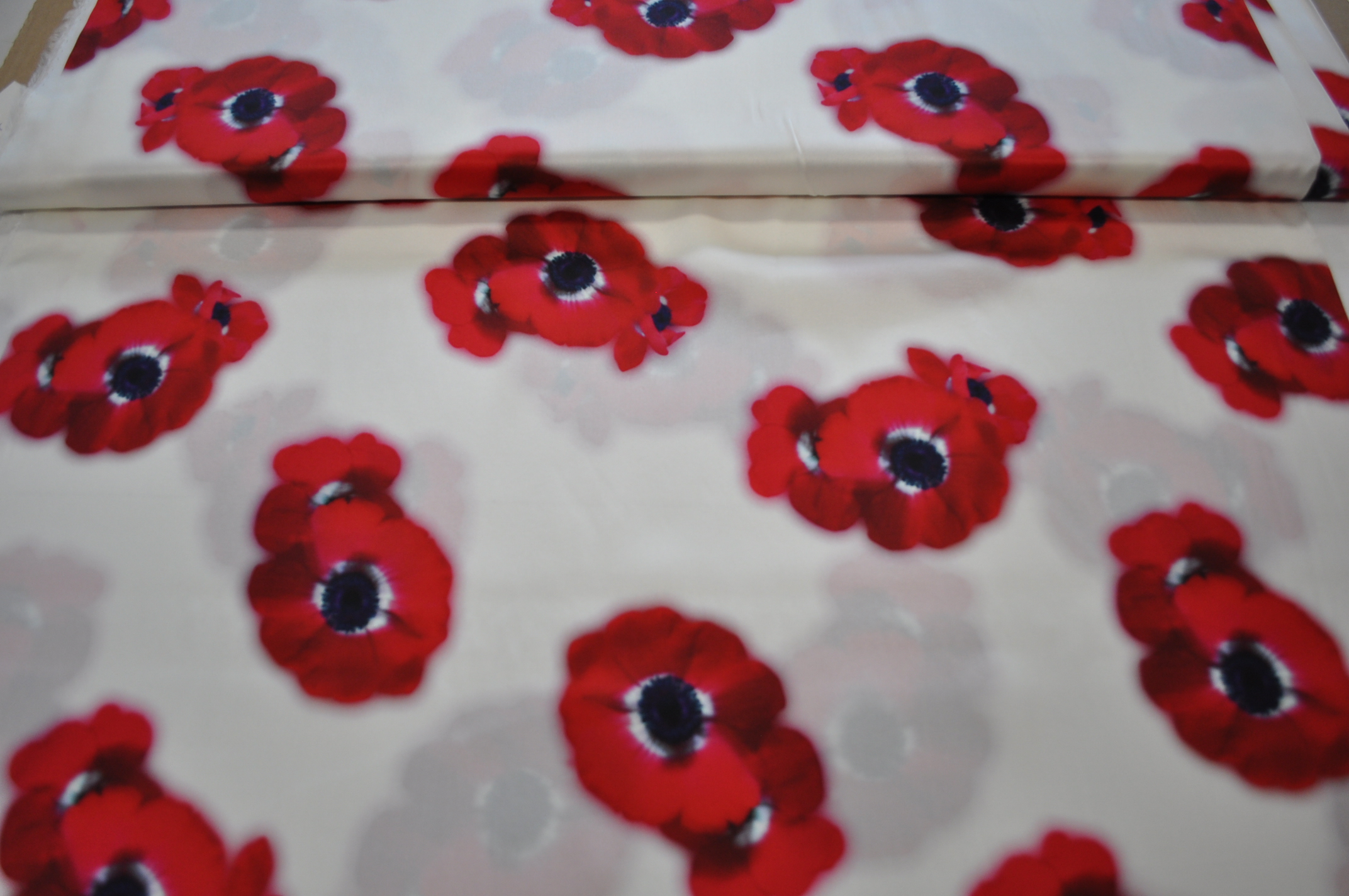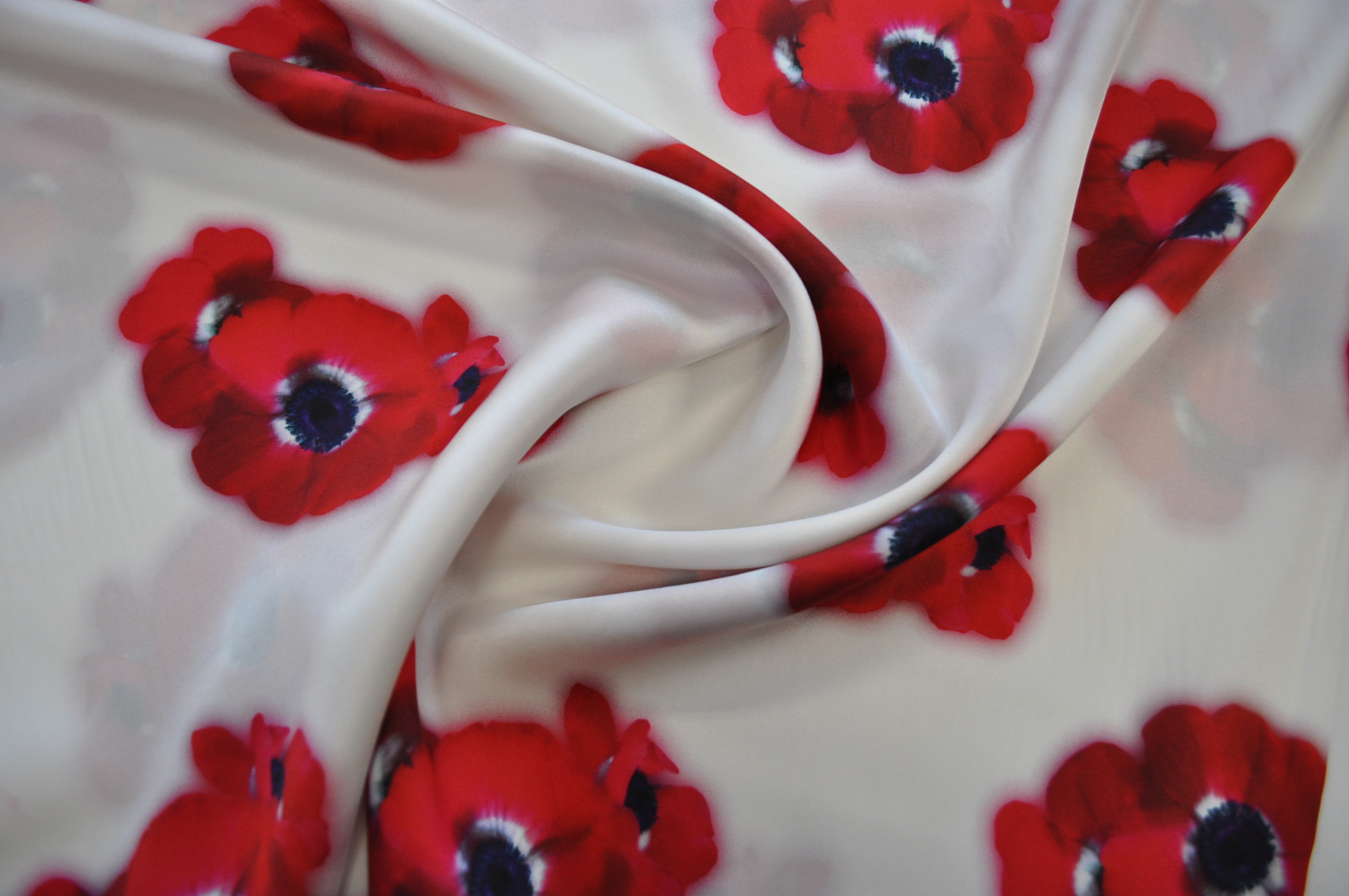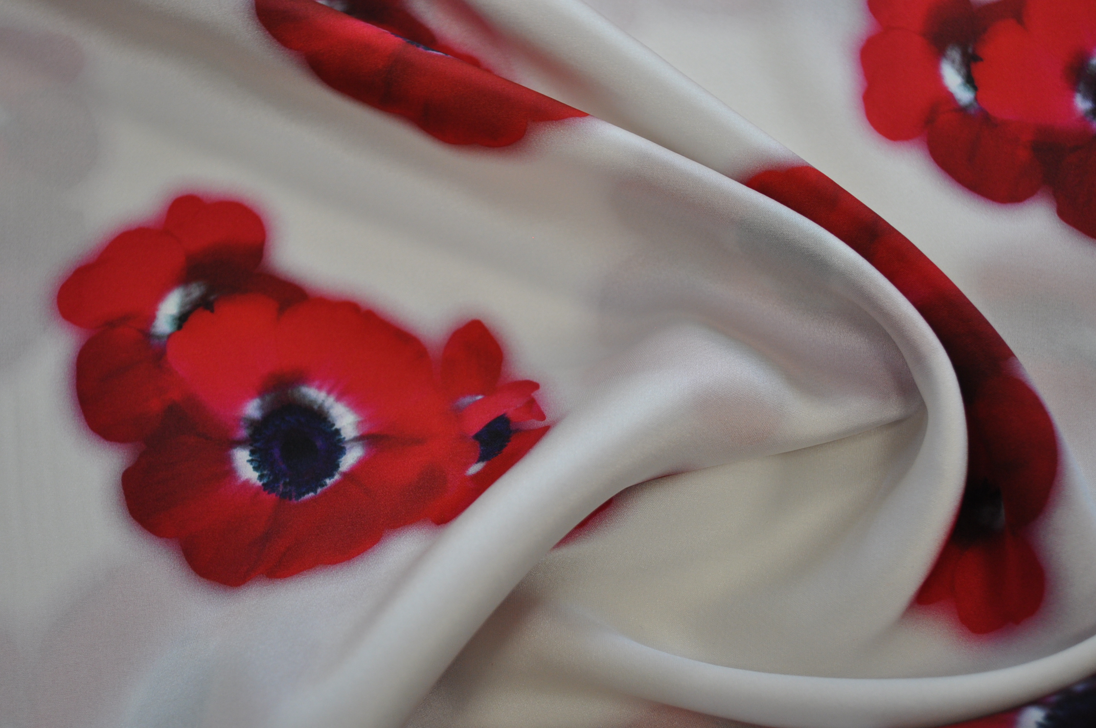Jedwab maki czerwone na śmietanowym tle