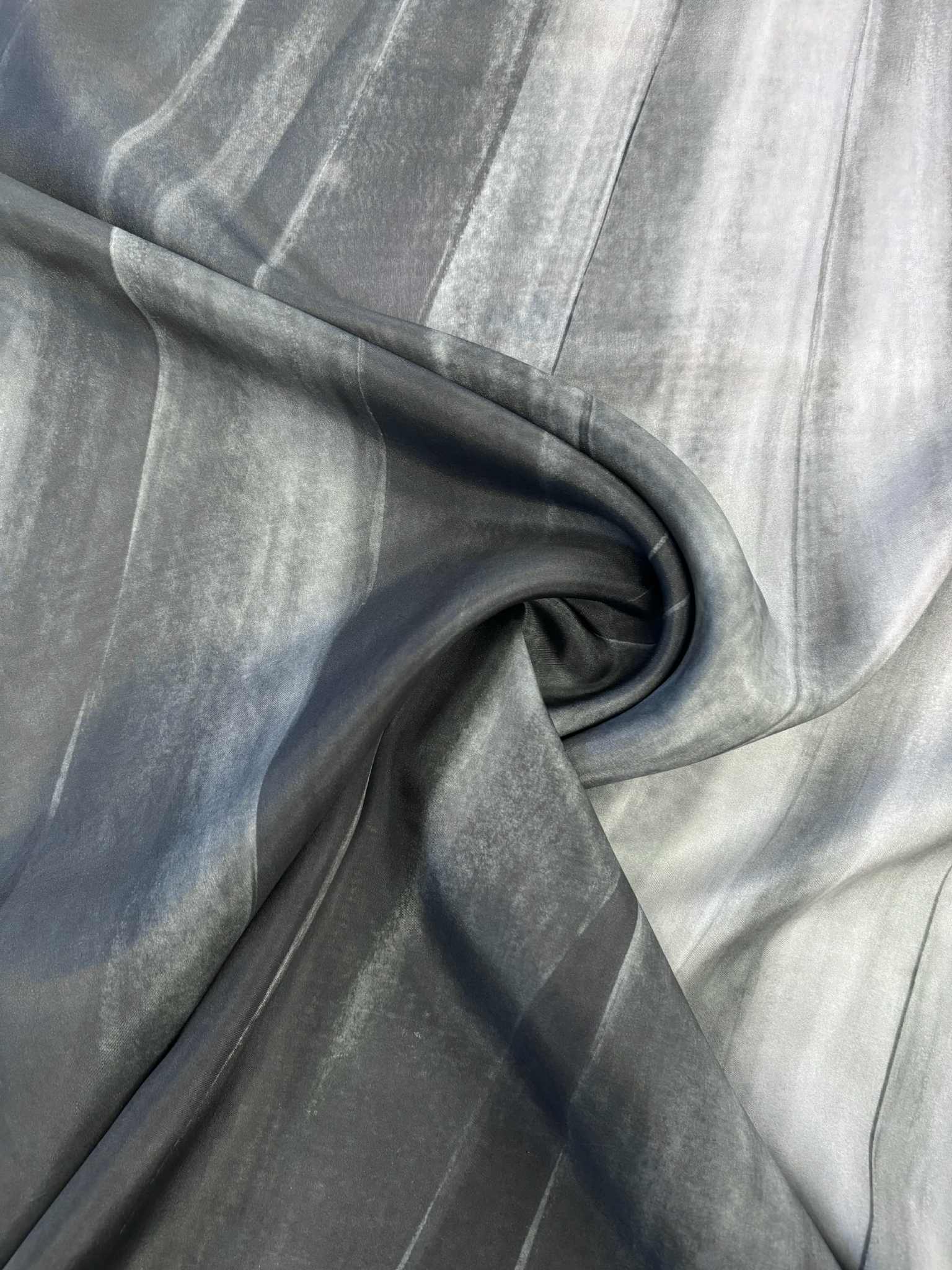 Materiał cienki, prześwitujący, w odcieniach szarości z wzorem przypominającym wysoką trawę. Odpowiedni na bluzki, spódnice, koszule.