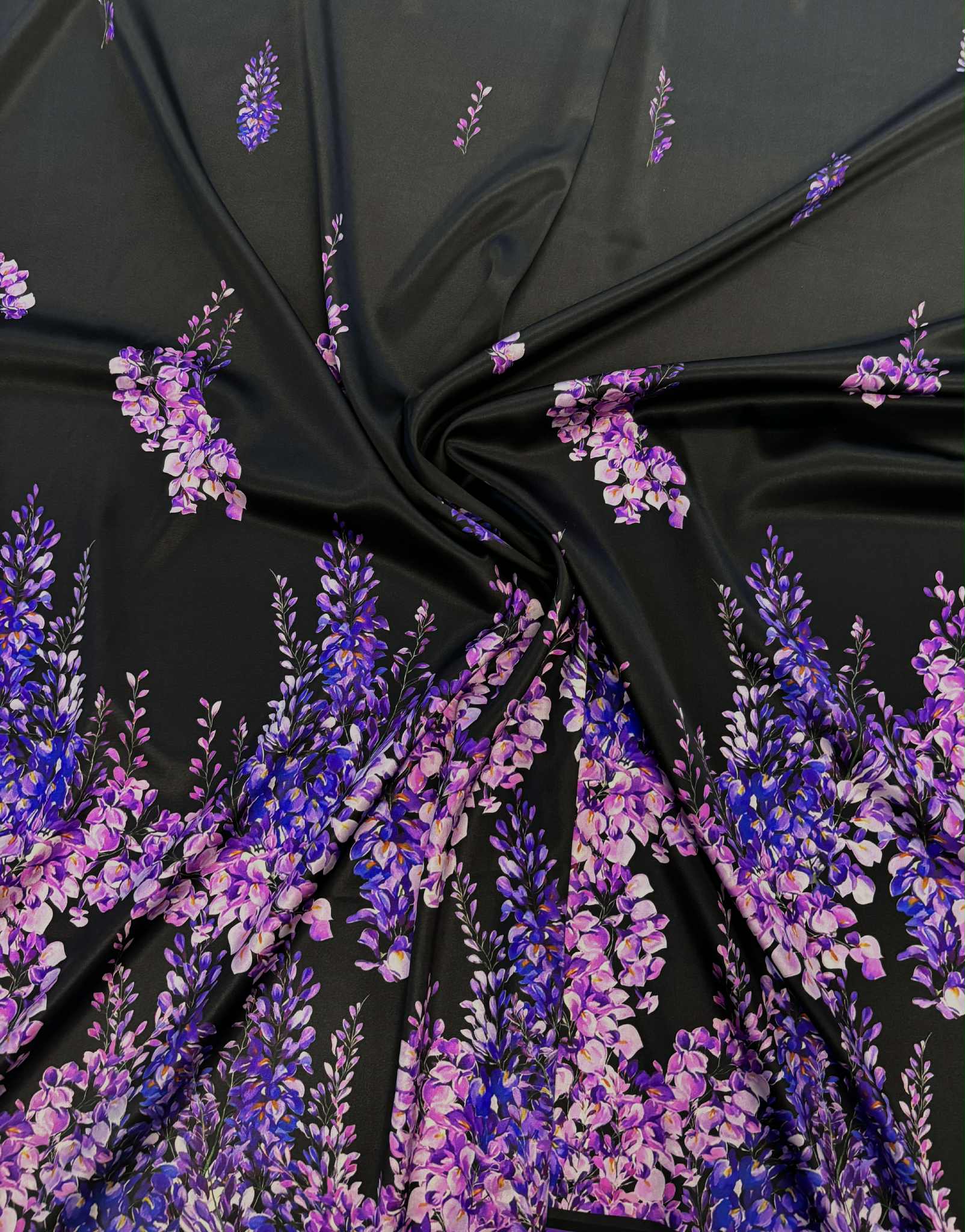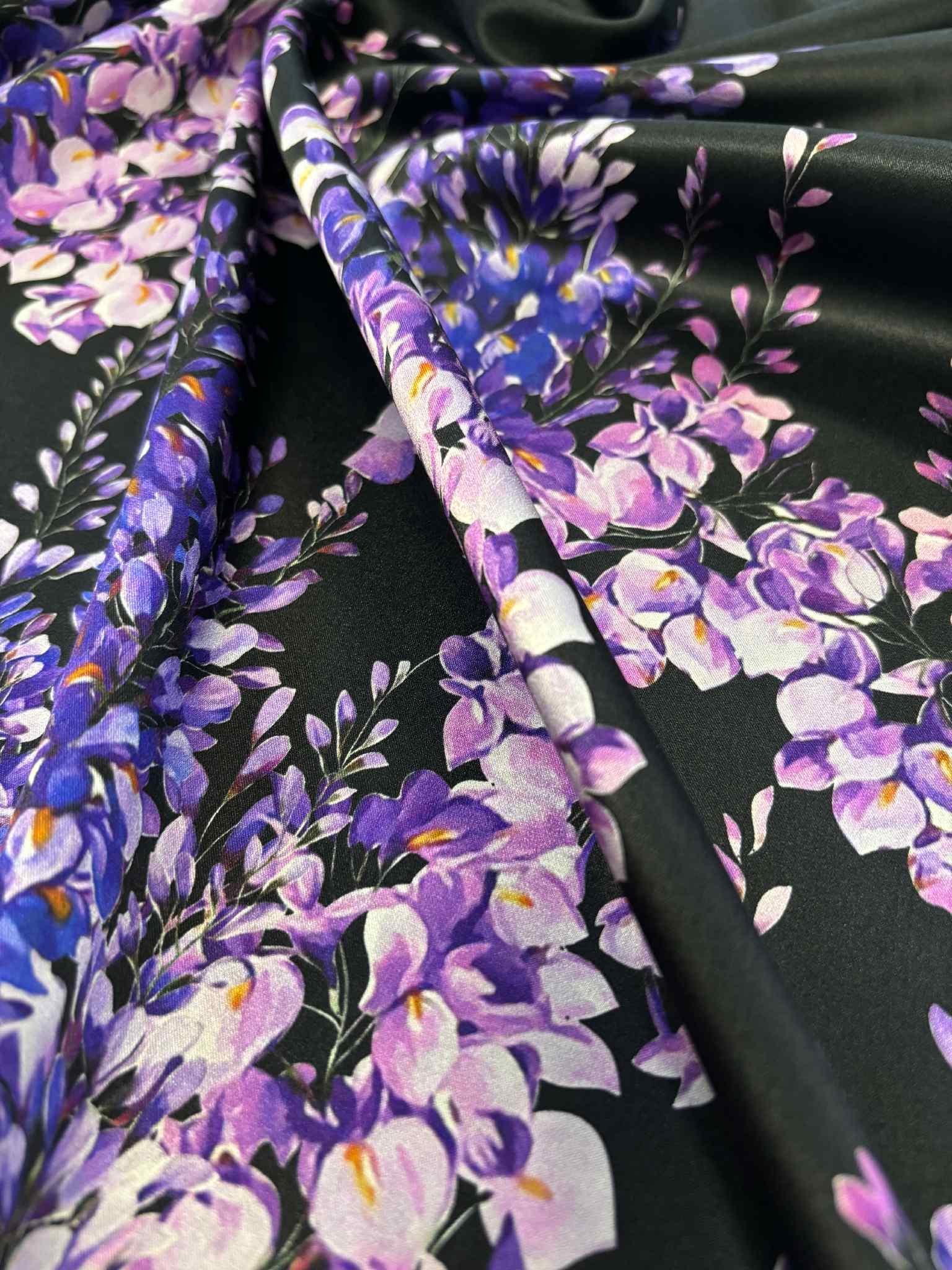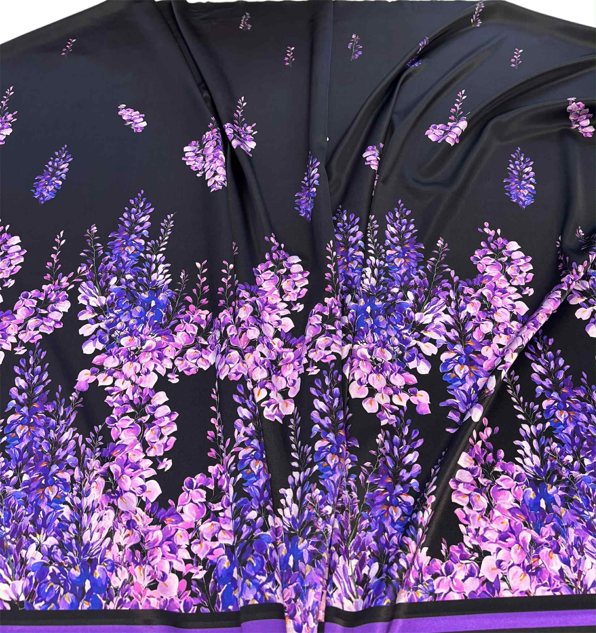 Jedwab satynowy fioletowy kwiaty -kupon