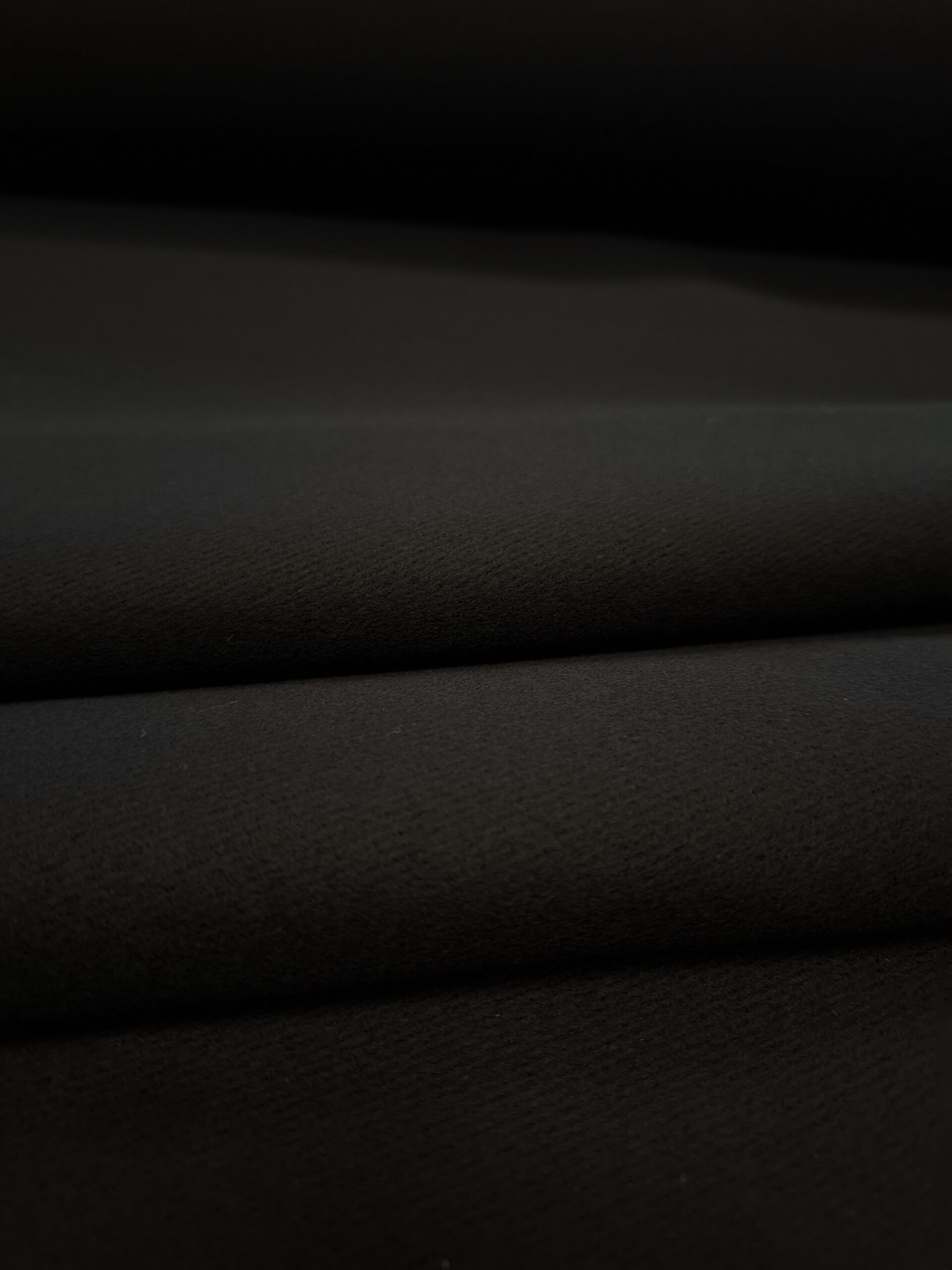Materiał gruby, miękki. Kolor czarny. Odpowiedni na jesienno-zimowe kurtki oraz płaszcze