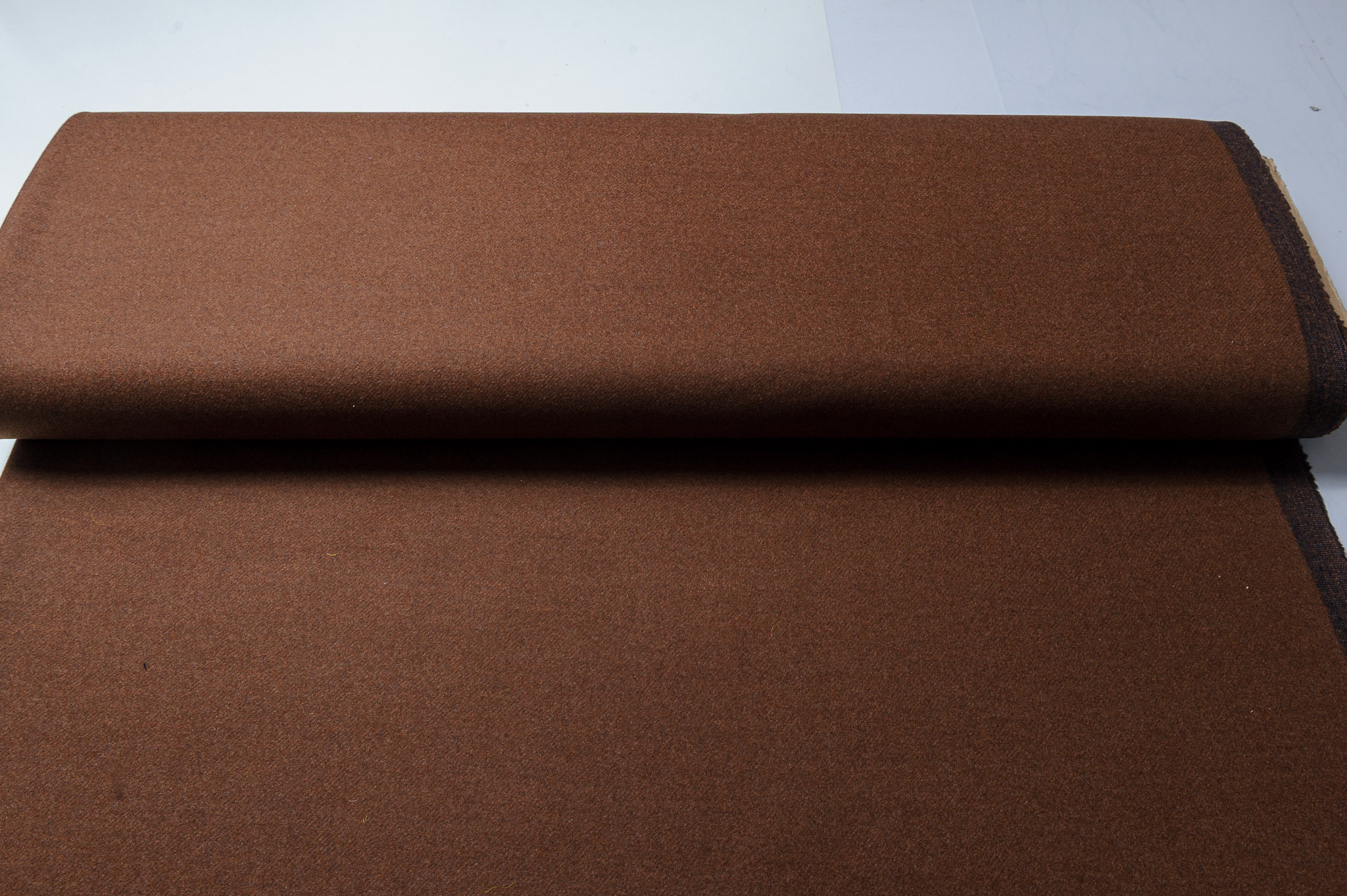 Materiał gruby, miękki. Kolor brązowo-granatowy. Odpowiedni na płaszcz, kurtkę.