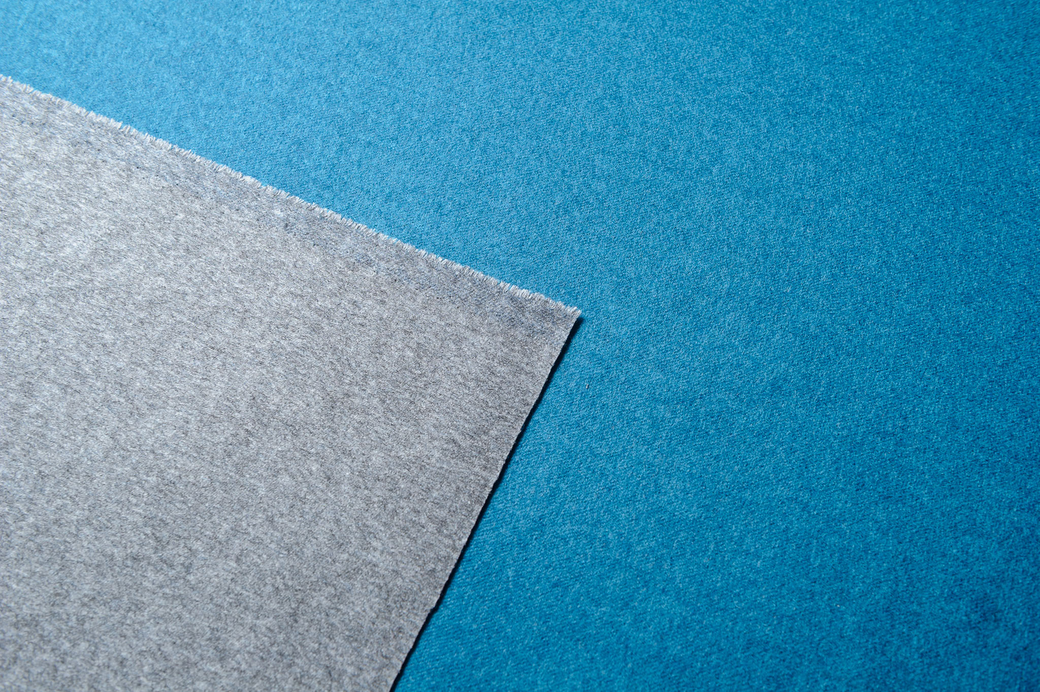 Materiał dwustronny, grubszy. Kolor turkusowo-szary. Odpowiedni na jesienno-zimowe kurtki oraz płaszcze