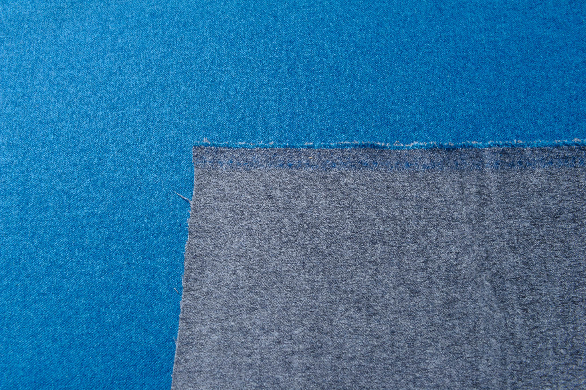 Materiał dość cienki, dwustronny. Kolor turkus/szary. Odpowiedni na cienki płaszcz, kurtkę, żakiet