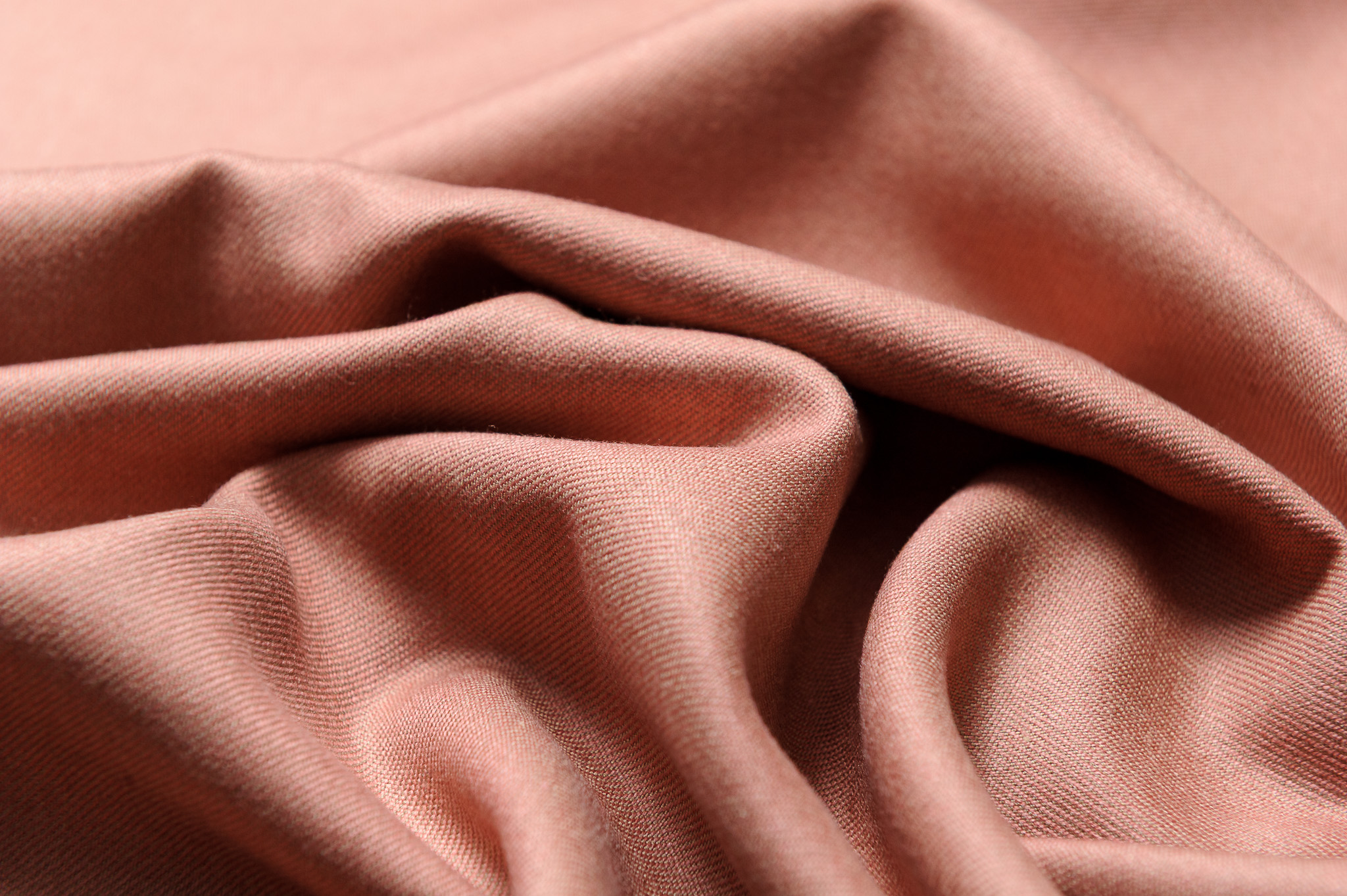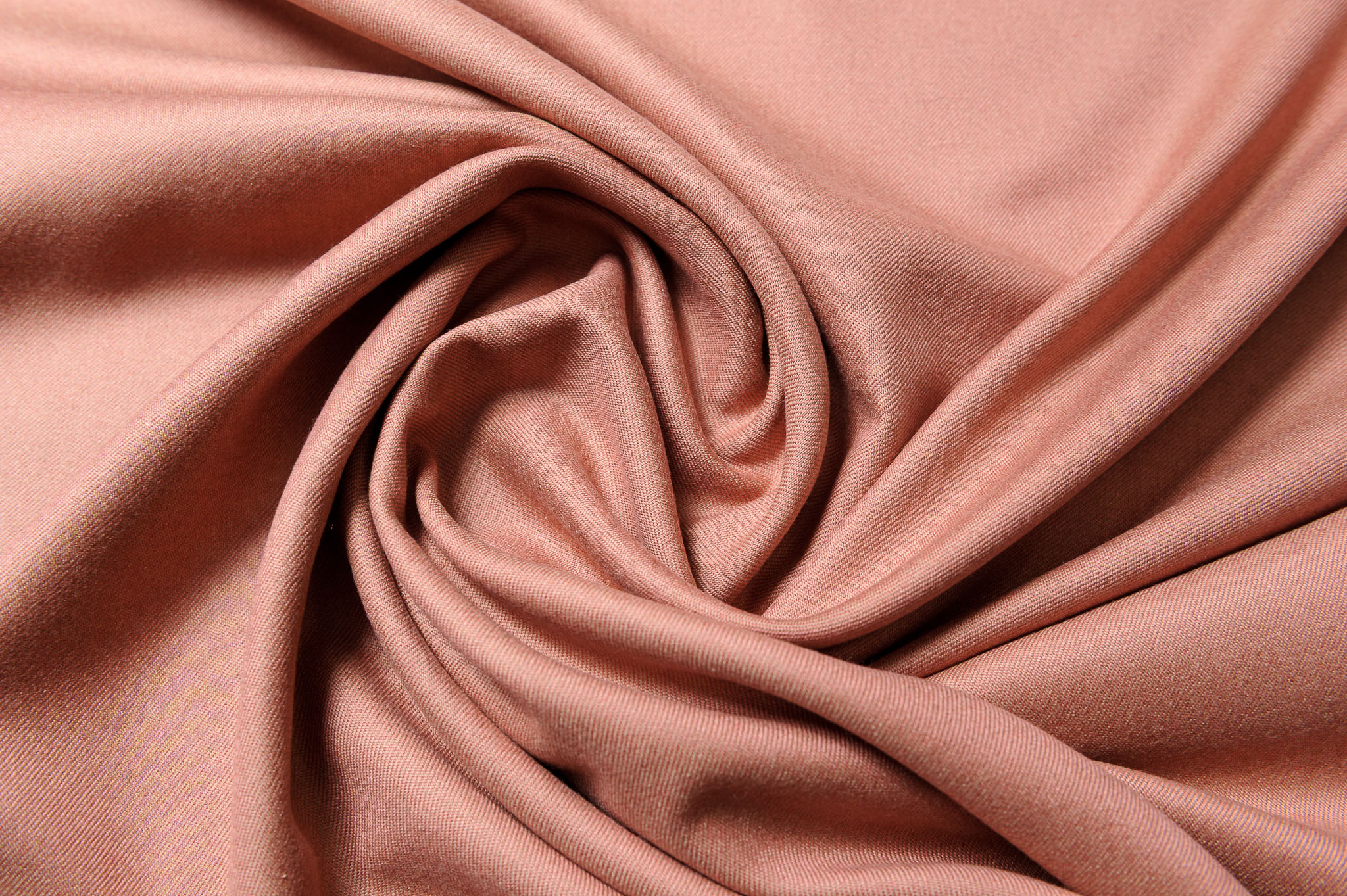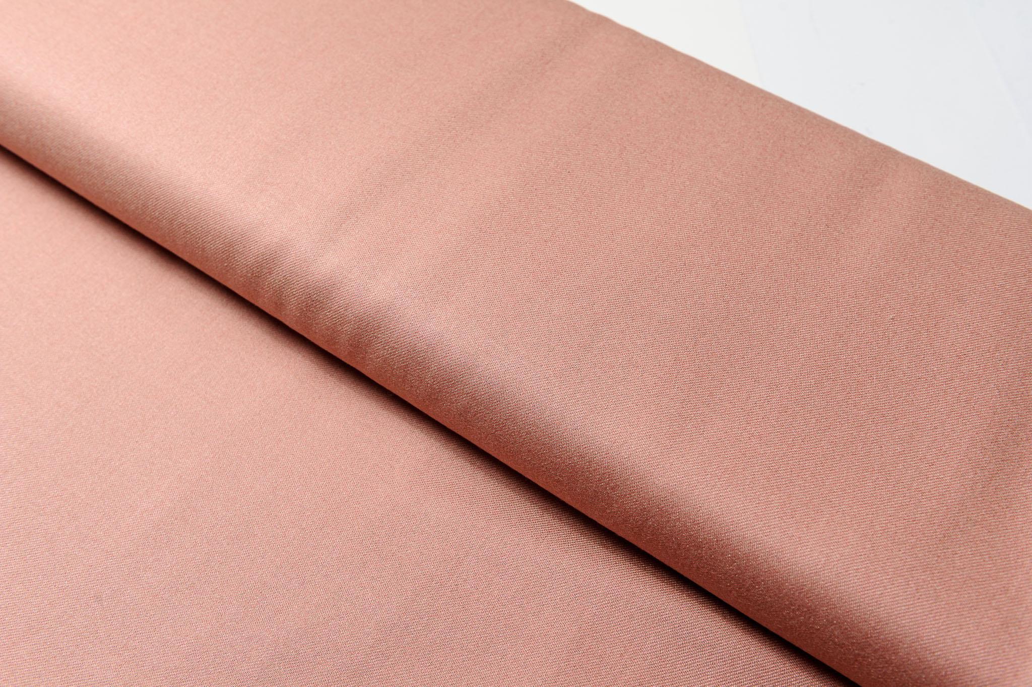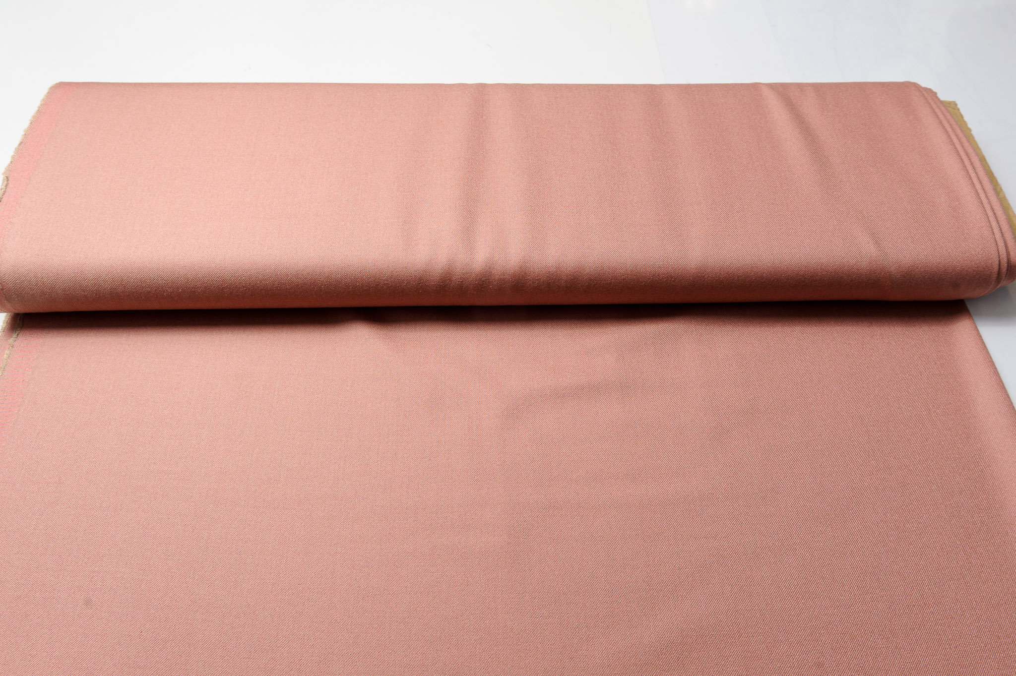 Materiał gładki, dość cienki. Kolor przygaszonej brzoskwini/przygaszonego łososia. Odpowiedni na sukienki, spódnice, płaszcz, żakiet.