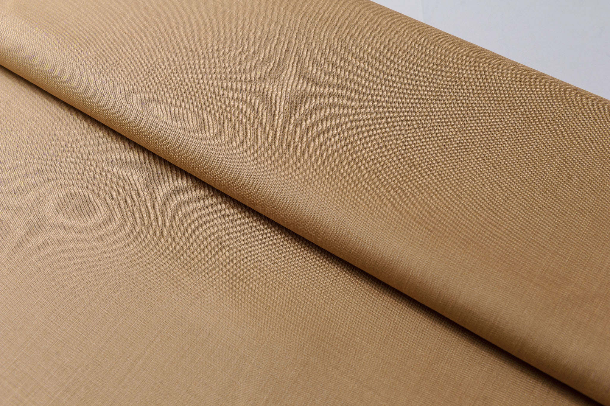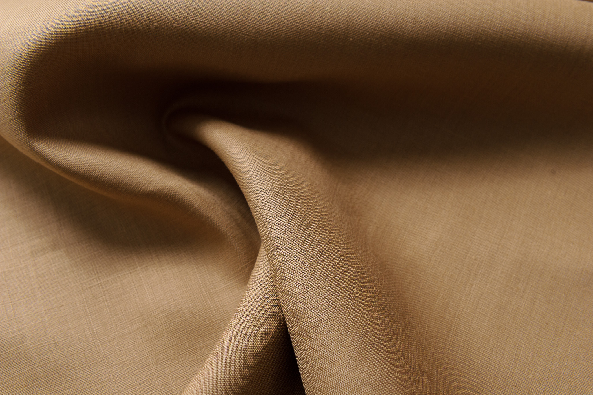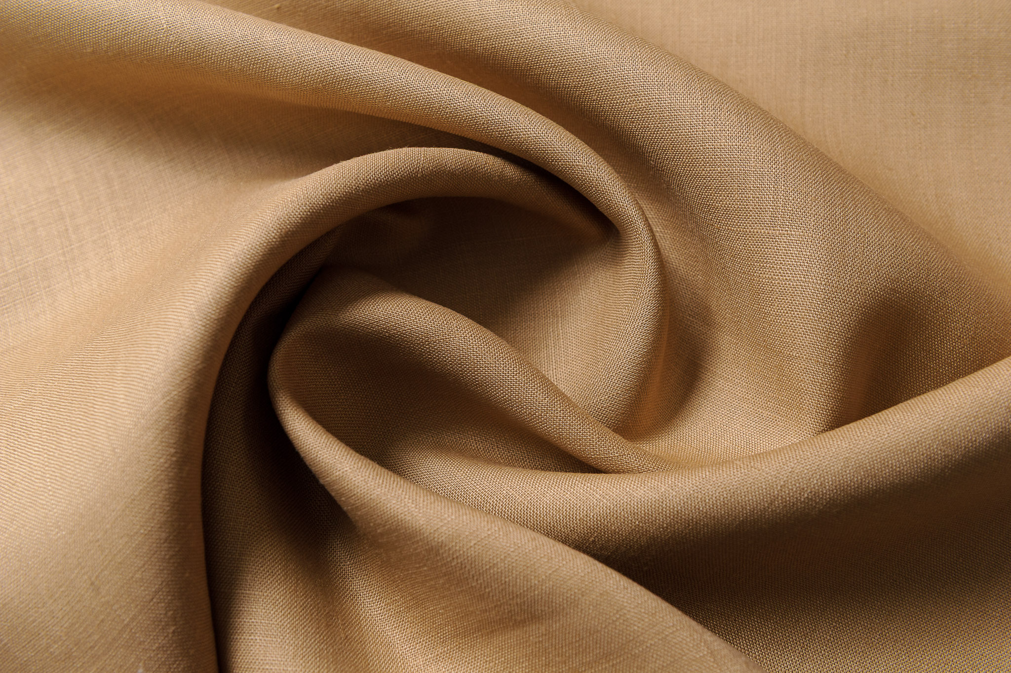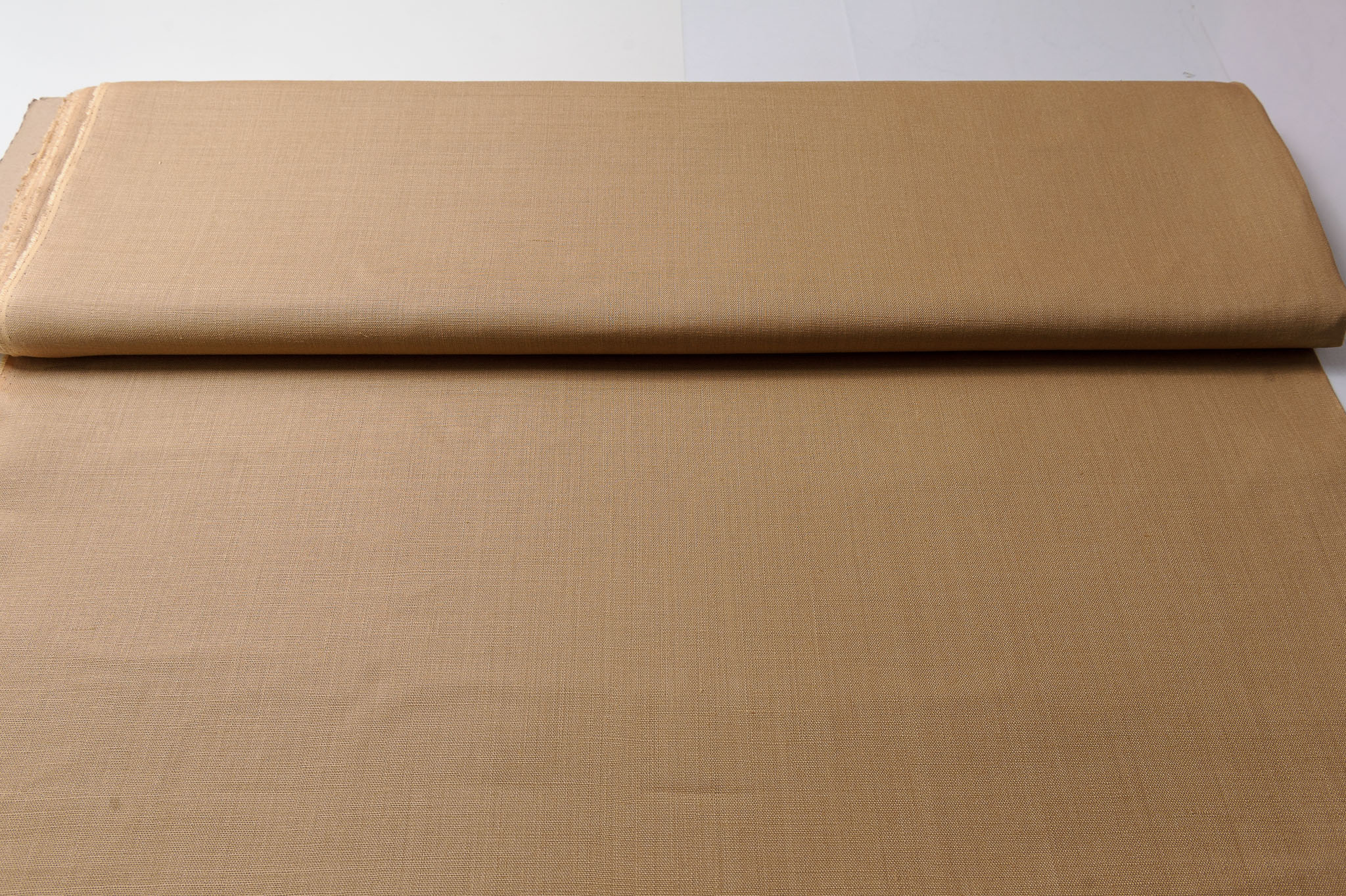Materiał o surowej strukturze, grubszy i sztywniejszy w kolorze beżowym. Odpowiedni na żakiety, spódniczki, spodnie, koszule, sukienki.