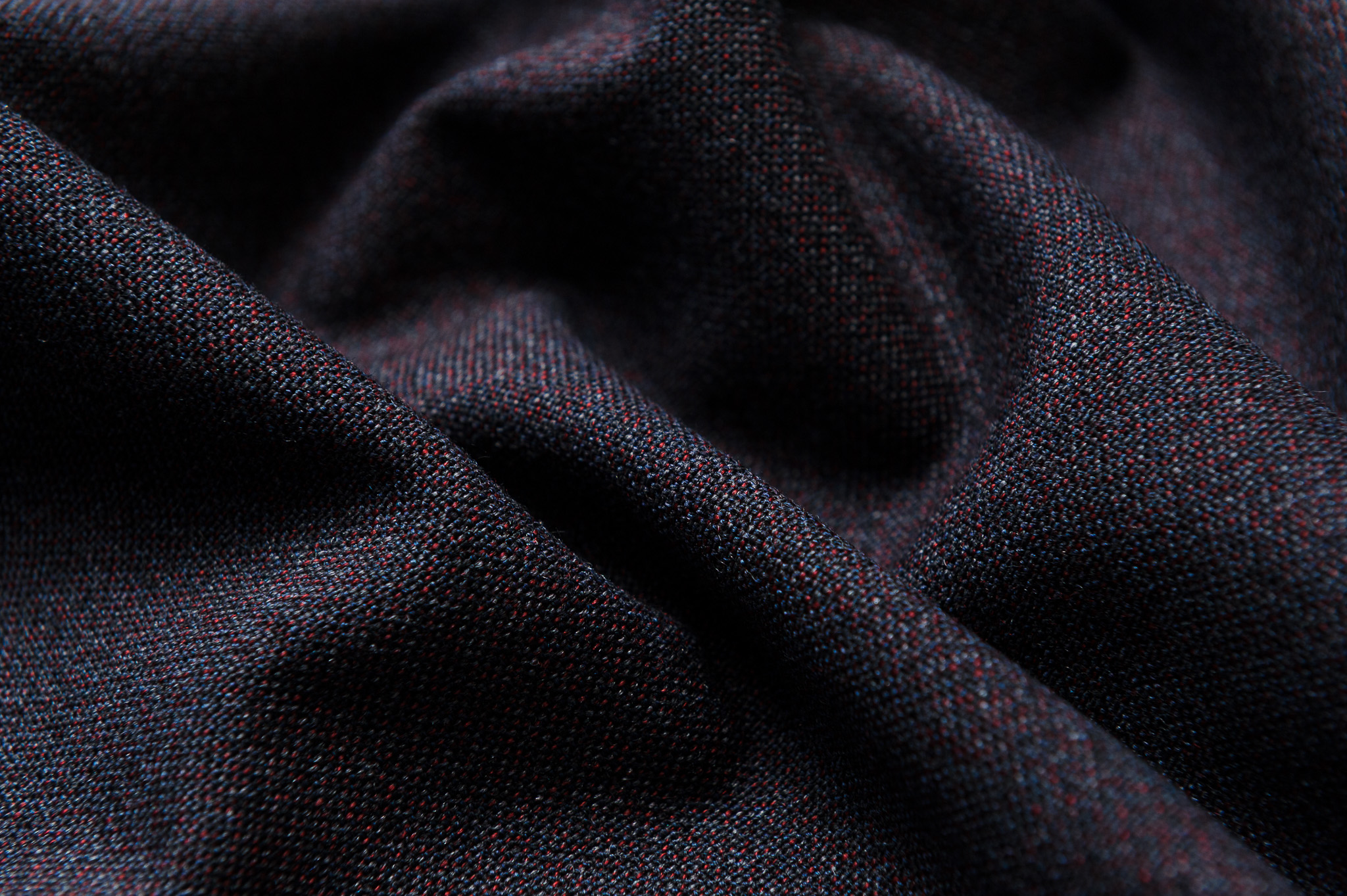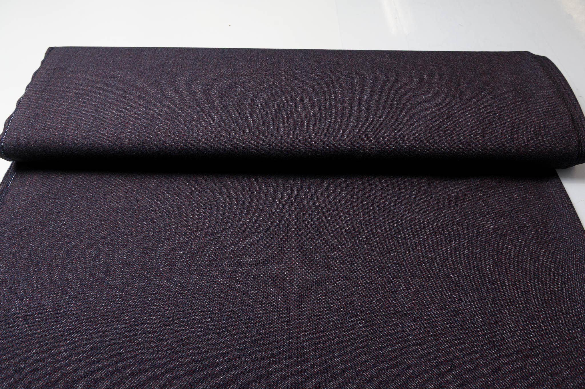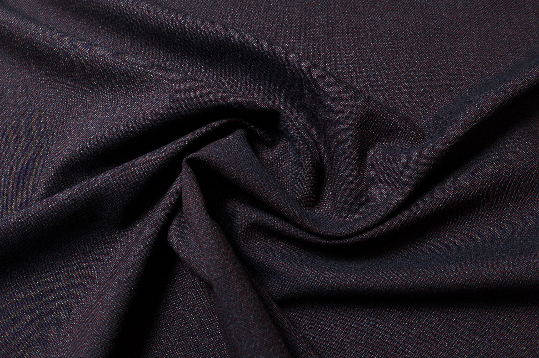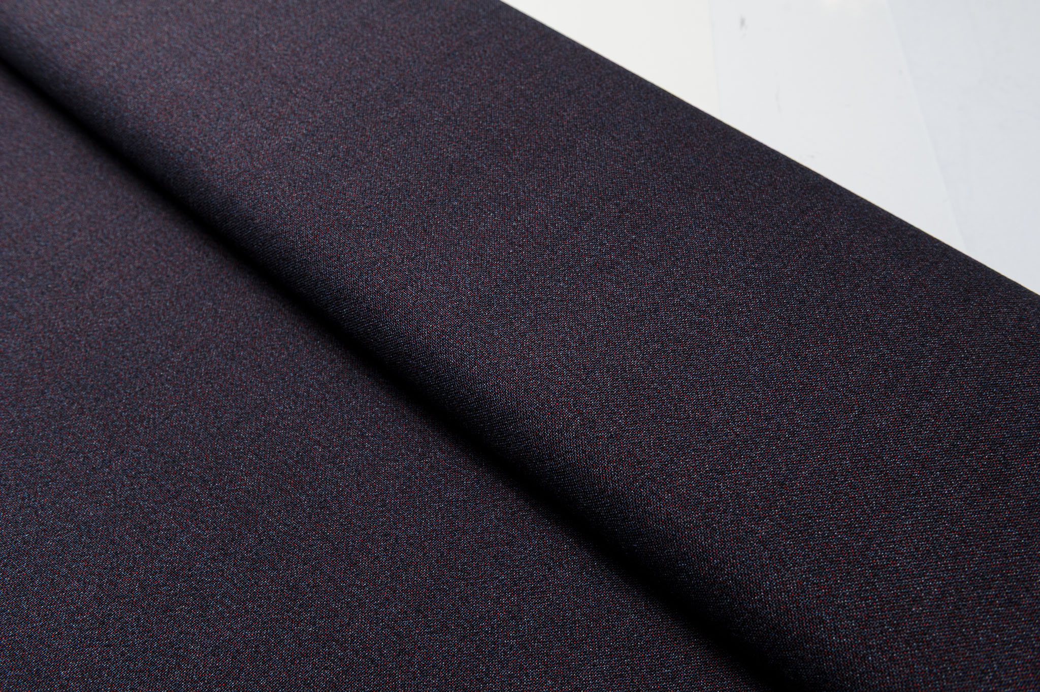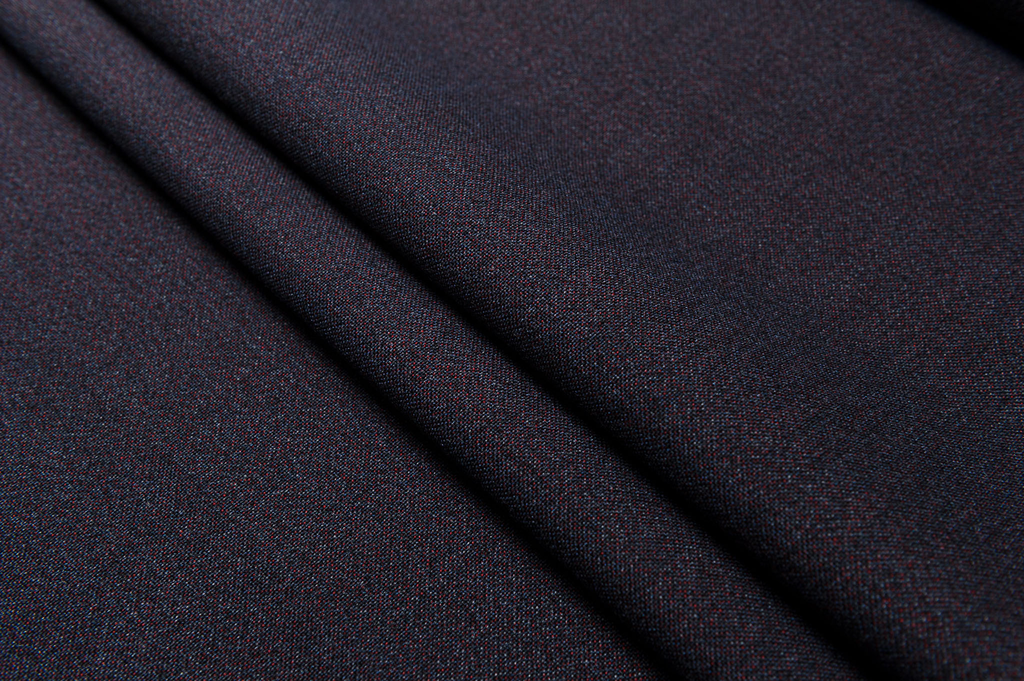 Materiał grubszy, sztywniejszy. Kolor melanżu ciemna czerwień połączona z granatem. Odpowiedni na płaszcz, żakiet, spódniczkę.